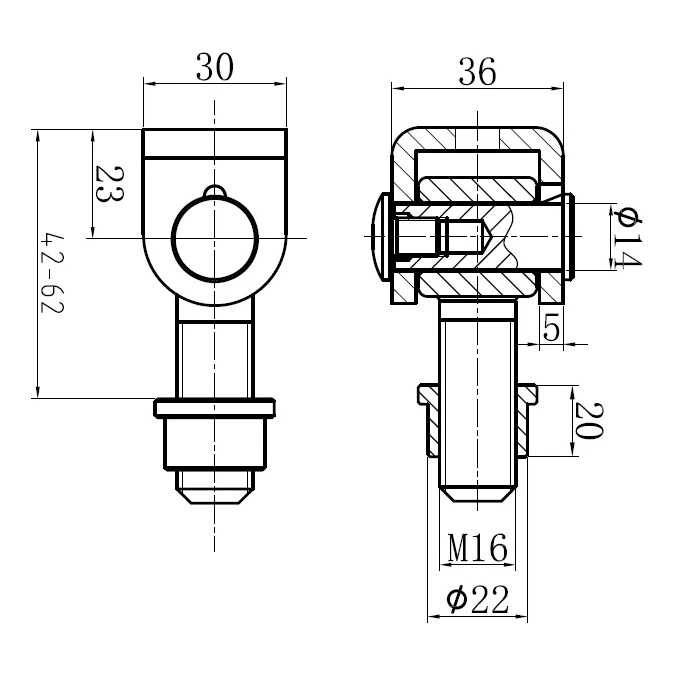 Bisagra de acero regulable M16 para soldar – puertas de hoja