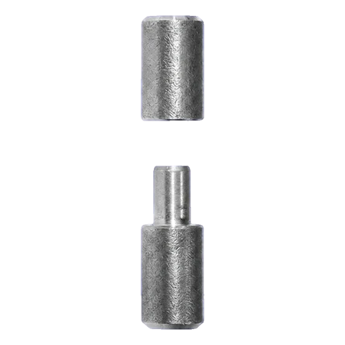 La bisagra consta de dos elementos: casquillo (parte hembra) y perno (parte macho), que se conectan mediante inserción. Antes de soldar al poste y a la hoja de la puerta se recomienda nivelar y ajustar cuidadosamente ambas partes, lo que garantiza funcionamiento suave y estabilidad de la construcción durante años de uso.